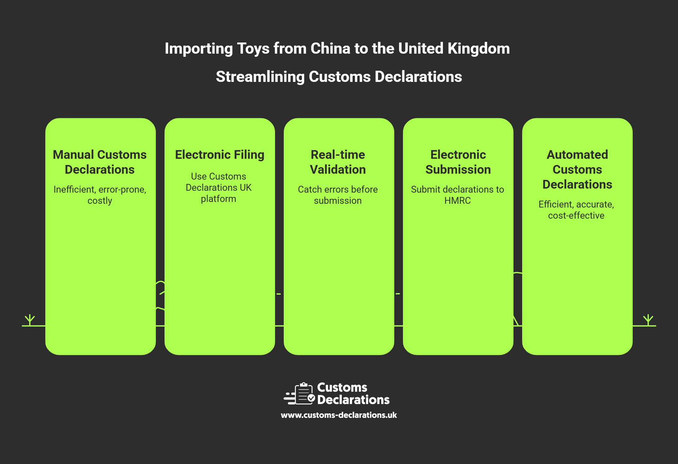 Importing toys from China to the United Kingdom offers UK businesses access to the world’s largest toy manufacturing base, competitive pricing, and extensive product variety across all toy categories. Success requires disciplined attention to product safety requirements, conformity assessment procedures, accurate customs classification, and transparent valuation practices. The indefinite recognition of CE marking provides UK importers with valuable flexibility in sourcing products that already meet EU standards without requiring separate UKCA certification. Understanding EN71 standards, maintaining comprehensive technical documentation, and selecting reliable Chinese suppliers with demonstrated UK market experience form the foundation of compliant toy imports. Accurate customs declarations filed through modern platforms such as Customs Declarations UK enable efficient border clearance while maintaining full audit trails that protect businesses during regulatory reviews. By combining supplier due diligence, rigorous compliance verification, detailed documentation systems, and validated customs procedures, UK importers can transform toy imports from complex regulatory challenges into reliable, profitable business operations that deliver safe products to children throughout the United Kingdom.